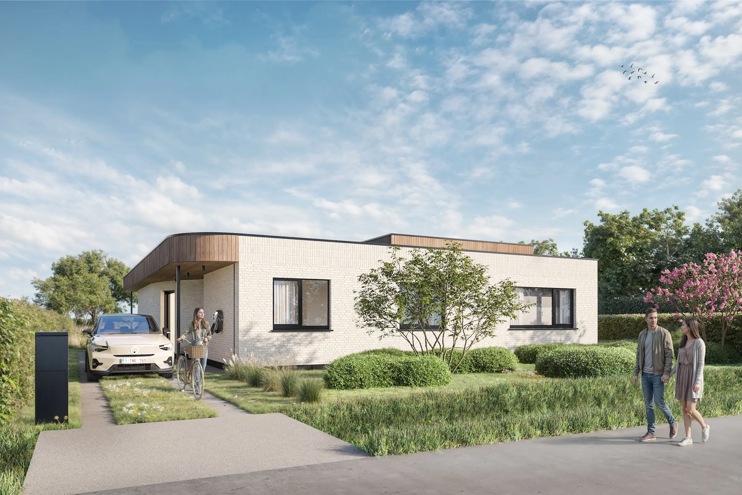 Wat deze gelijkvloerse woning echt bijzonder maakt, is haar speelse maar unieke karakter. Subtiele architecturale elementen doorbreken het strakke geheel en geven het ontwerp een eigen identiteit. Het resultaat is een hedendaagse woning waarin comfort, esthetiek en landschap samenkomen in een evenwichtig en uitnodigend geheel.